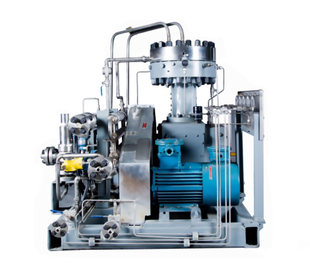 Diaphragm compressor is a special structure positive displacement compressor. The cylinder does not need to be lubricated, the sealing performance is good, the compression medium does not contact any lubricant, there is no pollution, and the compression purity can reach 99.999%. It is especially suitable for the compression, transportation, and bottling of high-value rare gases and highly corrosive, toxic, explosive, and radioactive gases. For example, H2、He、Ar、C2H4、F、HS、CL、SiH4、NF